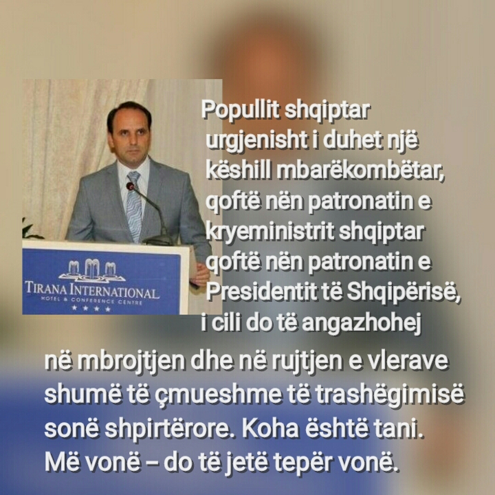 “Popullit shqiptar urgjenisht i duhet një këshill mbarëkombëtar, qoftë nën patronatin e kryeministrit shqiptar qoftë nën patronatin e Presidentit të Shqipërisë, i cili do të angazhohej në mbrojtjen dhe në rujtjen e vlerave shumë të çmueshme të trashëgimisë sonë shpirtërore. Koha është tani. Më vonë – do të jetë tepër vonë.”