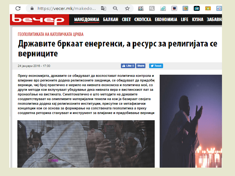 Што се однесува на геополитиката на Исламот, исламскиот теолог и поранешен генерален секретар на Исламската Верска Заедница (ИВЗ), Африм Тахири објаснува дека Исламот е религија чиј извор е книгата на Алах, Божествениот Куран и Сунетот.